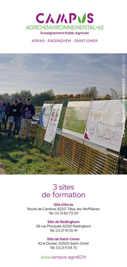 - Soit Campus Agro-Environnemental 62 site d’Arras – Route de Cambrai 62217 Tilloy-les-Mofflaines – N° UAI 0622257 S