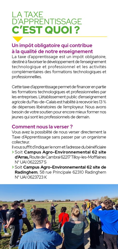 - Campus Agro-Environnemental d’Arras – Route de Cambrai 62217 TILLOY-LES-MOFFLAINES – Référence Taxe Apprentissage 2026