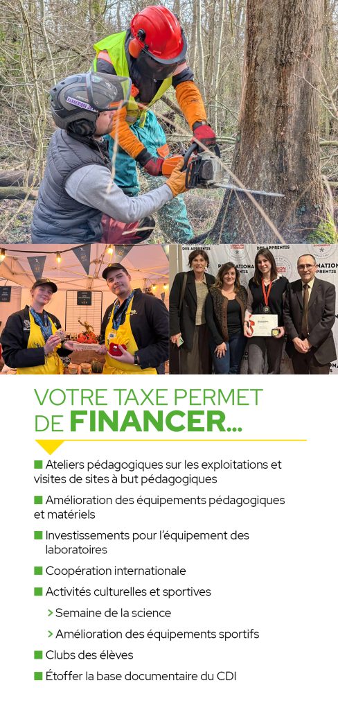 La formation est un enjeu majeur dans notre société. Dans ce cadre notre établissement professionnalise des jeunes dans les domaines de l’agriculture, des travaux paysagers, de l’environnement, des services aux personnes en proposant des formations du CAP au BC+2. Notre insertion professionnelle est très bonne, puisque plus de 90% de nos diplômés trouvent un travail rapidement à la fin de leur formation. C’est pour poursuivre l’amélioration du cadre de travail et des équipements pédagogiques que nous vous sollicitons pour le versement de votre Taxe d’ Apprentissage 2026.