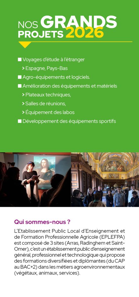- Par virement bancaire à l’ordre de Mr l’Agent Comptable de l’EPLEFPA du Pas-de-Calais – Référence Taxe Apprentissage 2026